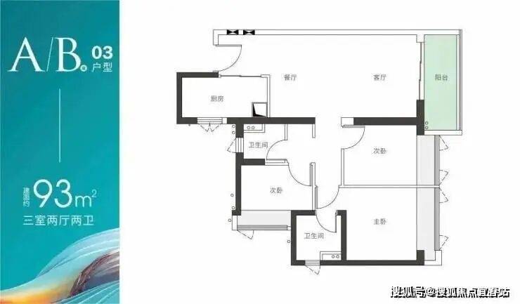 A/B座03户型—建面约93m² 三房两厅两卫