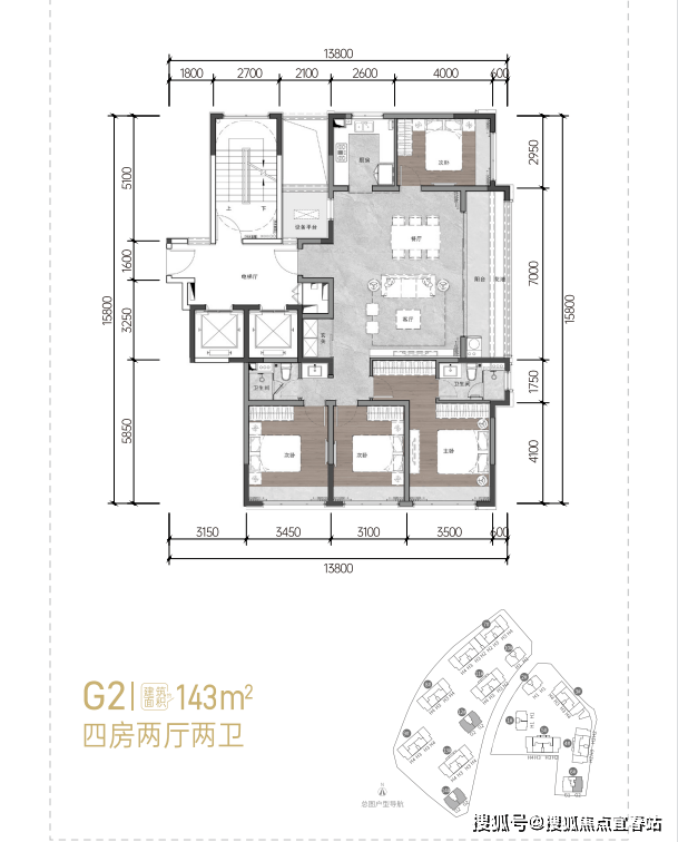 142㎡:四房两厅两卫