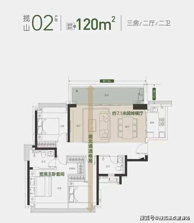 建面约 120 ㎡ 02户型 3房2厅2卫