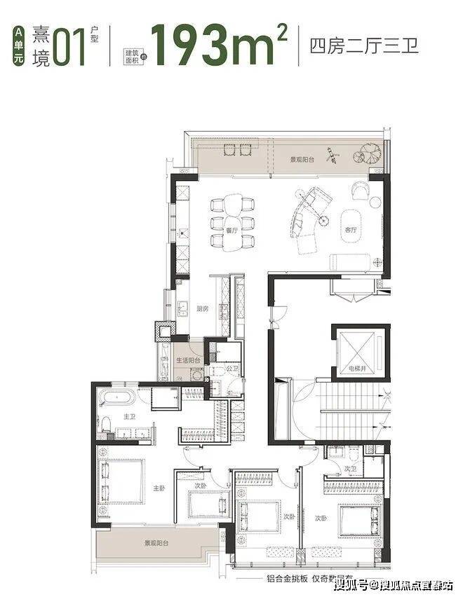 建面约 193 ㎡ 01户型 4房2厅2卫