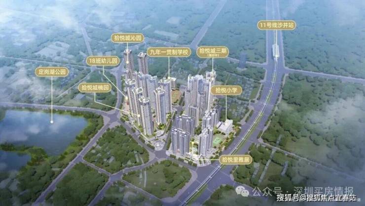 拾悦城原为壆岗岗厦片区城市更新项目,位于宝安区沙井片区,11号线沙井和马安山地铁站之间,紧邻宝安大道,周边新盘有招商雍和府和万丰海岸城等。