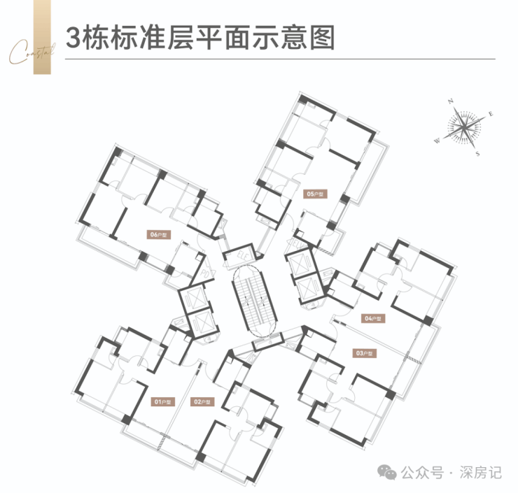 3梯3户,“品”字排布,确保每户通风采光、视野无遮挡,3户均为纯大户型;