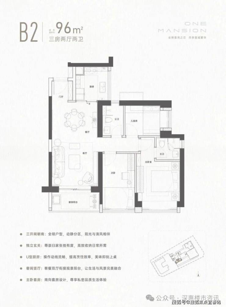 96㎡的3房2厅2卫,折后总价480-520万/套。