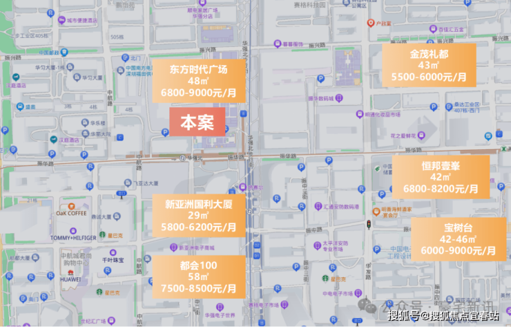项目周边商办产品主流租金水平可达150-200元/㎡/月,一房可租6000-9000元/月,华强北有着高质量、庞大的租赁客群,稳定的租金,核芯地段优质物业注定倍受市场资金热捧(数据来源:贝壳)。