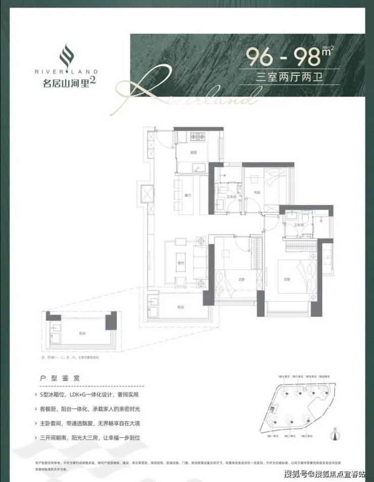 ⭐04/05户型95-98平米 三房两厅两卫(东南)折后335-355万左右。