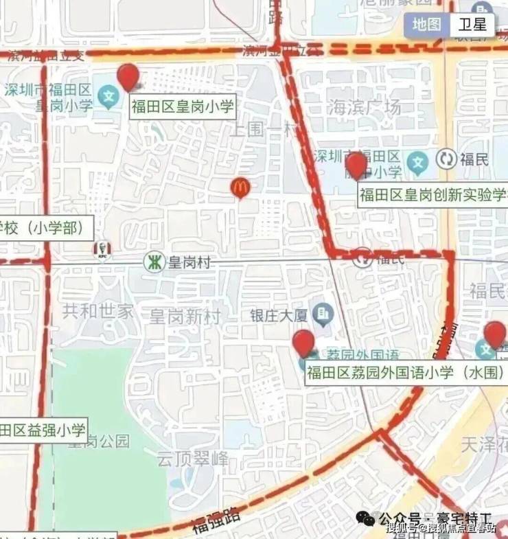 项目按2025年的学区划分来看,小学学区处于皇岗小学、荔园外国语小学(水围),中学学区处于皇岗创新实验学校(初中部)。