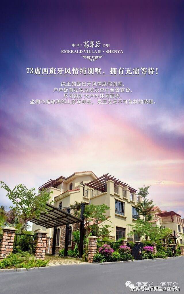 申亚翡翠谷三期,项目位于海南三亚,是亚龙湾核心区域内唯一的纯别墅项目。纯正的西班牙风情度假别墅,户户配有私家庭院及空中全景露台,尽可能扩大户外休闲面积,全方位地将外部红霞岭山景、亚龙湾高尔夫景引入建筑中,打造360°全景观生态住宅。坐拥73席珍稀邻山亲海别墅,是亚龙湾不可复制的荣耀。