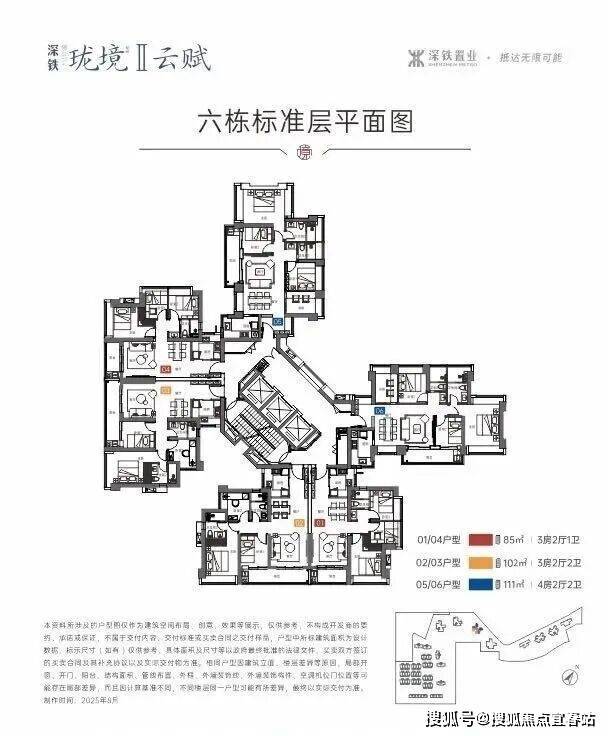 本次推出的二期云赋首推6栋,共312套房源,主打刚需和改善型户型,包括85㎡三房一卫、102㎡三房两卫和111㎡四房两卫。