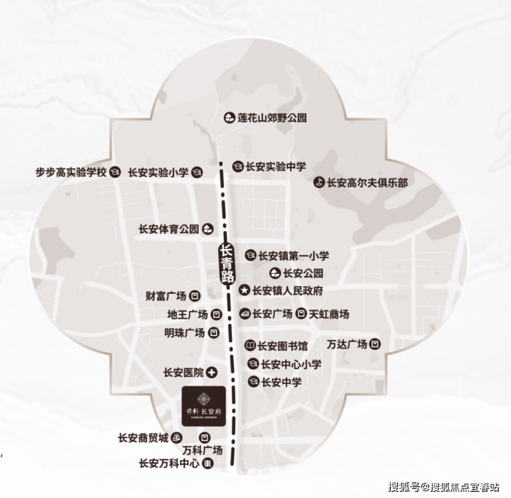 出门即享万科广场、明珠广场、地王广场等8大商业综合体,长安镇政府、长安图书馆、长安医院等行政服务配套,一城繁华尽府外。