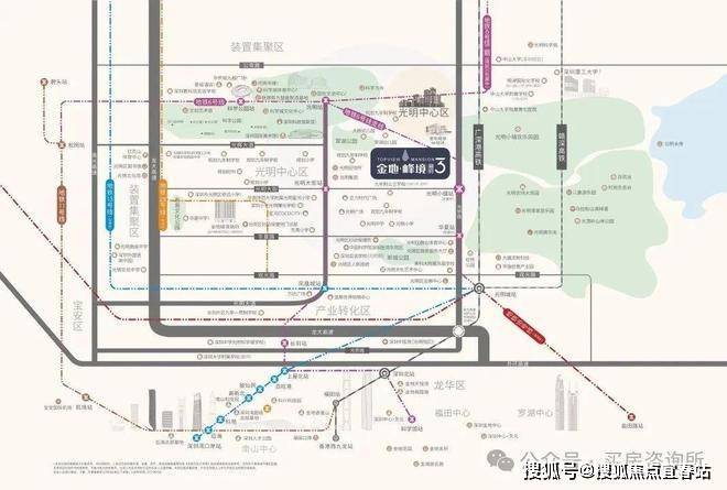 金地峰境誉府项目位于光明中心区翠湖公园东南侧,同时坐标光明中心区CBD,紧邻6号线地铁口,东侧是 “光明版深南大道”光侨路,一路之隔就是 “光明最大的生态公园”、平时遛娃摘草莓很方便的光明小镇,金地峰境誉府,是集商务+居住+生态于一体的都市核心区。