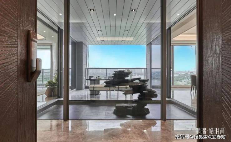 佛山首个空中院落对景玄关,加强了入户的仪式感,并与远处开阔的江景形成了多重体验,让自然渗透进每个人的生活方式里,让城市人居空间升华至生活美学高度。
