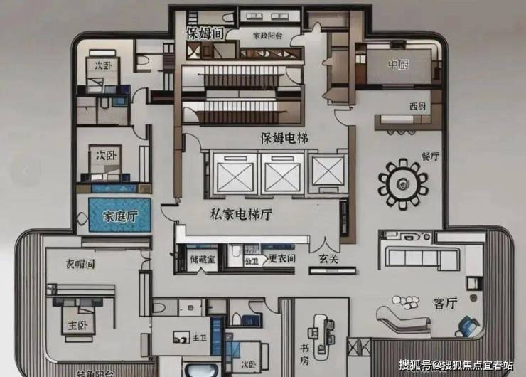 中信元湾府的户型设计明显跳脱旧思维,从横厅尺度、公区布局到生活动线,都向国际一线大平层靠拢。