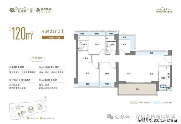 当前首推的远洋城启家园,总占地面积约1.65万㎡,总建筑面积约13.75万㎡,计容建筑面积约10.5万㎡,容积率6.12,绿化率40%,共由4栋47层高的住宅组成,其中1栋1/2/3/4单元住宅47F,2栋是1所9班幼儿园。