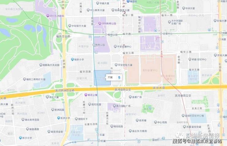 项目位于福田中心片区,滨河大道和民田路交汇处东北侧,距离购物公园站约500米。