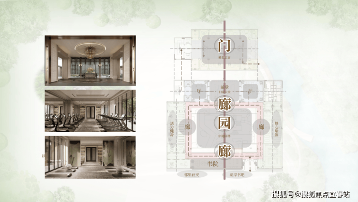 ▸打造“中天门庭”会所空间,通过三重空间序列(门-廊-院)营造礼序归家动线