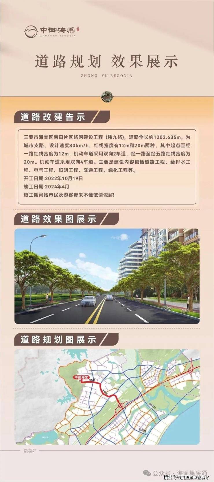 海棠湾是海南唯一一个由国家规划打造的度假湾区,定位为国家海岸,22公里海岸线汇聚千亿配套,32家超五星级酒店、4大主题乐园、5大高尔夫球场、310解放军医院海南分院、亚洲最大单体免税店、华润超级万象城、北京华联SKP等资源环伺。中御海棠项目位于海棠湾南田片区,坐享东线高速、山海高速、机场、高铁、城际公交等三维立体交通网,度假生活出行四通八达。