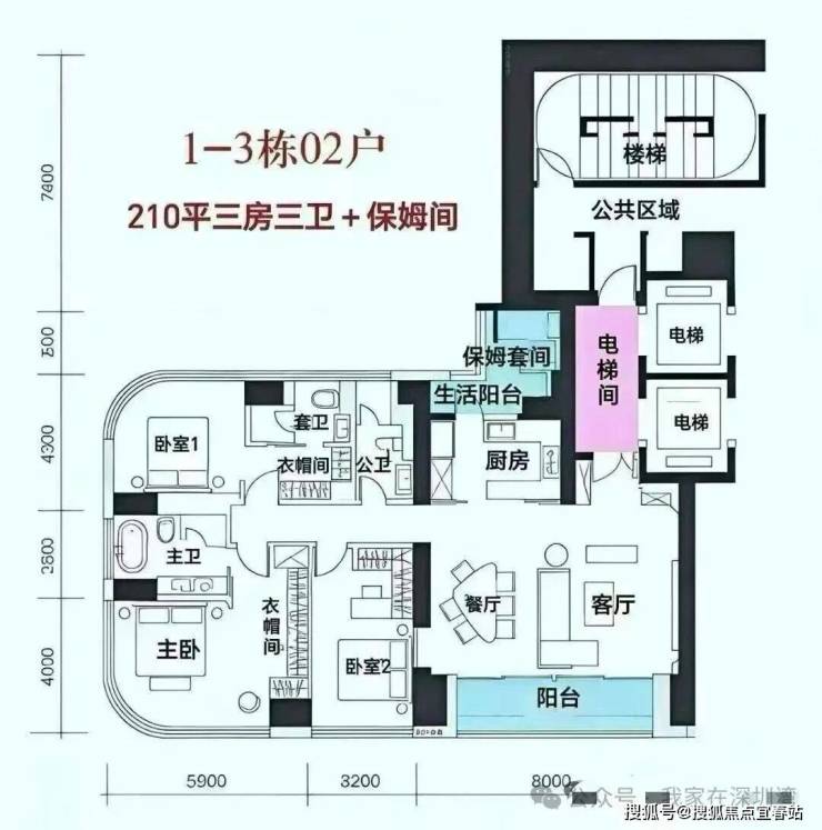 1D\1E栋:约302㎡户型4+1房2厅4卫,有2栋,每层两户,1D栋49层,182.77米,1E栋43层,161.77米,均为西南向,3梯2户,看深圳湾海景,落位于地块西侧南北通;总价预计4360-5900万!