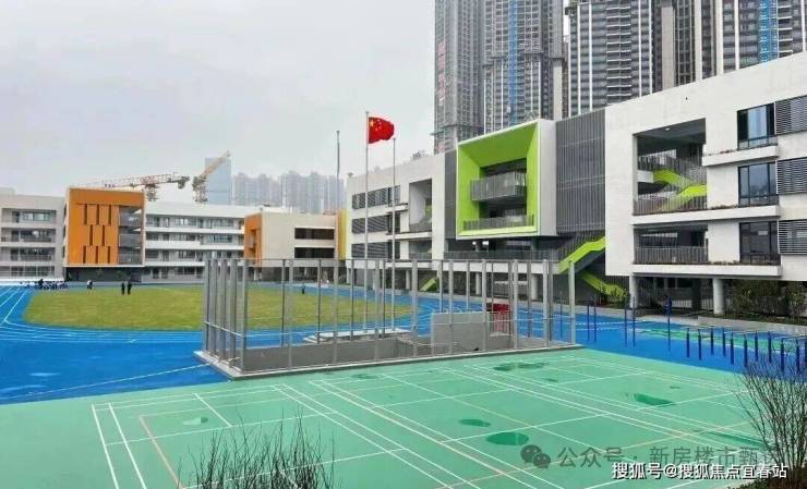 项目除自建12班幼儿园外,小学学区覆盖艺术高中民治学校(九年一贯制)和华东师大附属未来小学,初中更纳入龙华实验学校大学区。2026年将启用的龙华第二实验学校华美校区(54班)与项目南侧相邻。