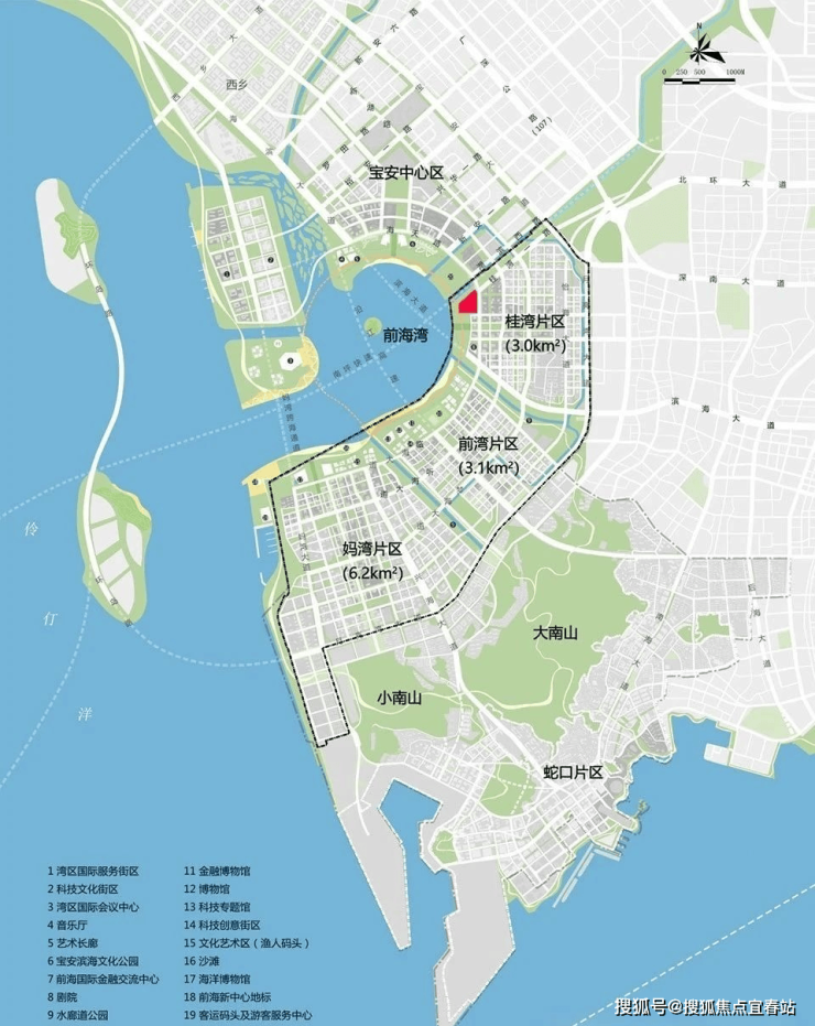 湾啟紫荆府位于南山前海深港合作区妈湾15单元02街坊,港城路与航海路交汇处西南侧,地处前海深港合作区最为核心的区域,在2023年12月10日,国务院批复《前海深港现代服务业合作区总体发展规划》(简称《前海规划》),开启前海合作区开发开放新篇章。项目整体占地面积约2.9平方公里土地,几乎占据了前海妈湾片区的一半土地,规划7大单元板块,是集办公、居住、商业、酒店、文化娱乐配套设施于一体,建筑面积超500万㎡的恢弘体量。从位置上看,妈湾是唯一一个在三个湾区里面拥有270°视野,两面临海,容积率极低,未来有希望成为高端宜居生活住区。妈湾未来的配套规划,有沿滨海岸线建设金融博物馆、改革开放博物馆、国深博物馆、海洋博物馆、渔人码头、前海新中心地标等市政配套集群。