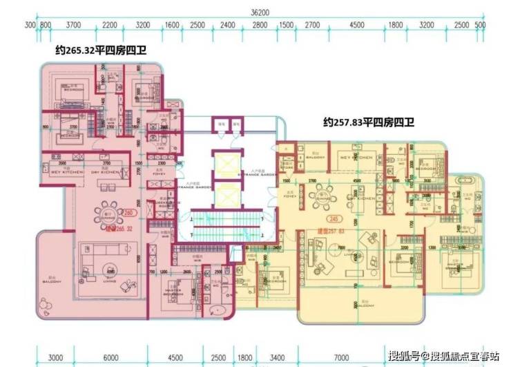 其中最大的332平4房5卫+家政套间,分布在2/3单元,据说按目前深圳新规豪宅最高标准打造。