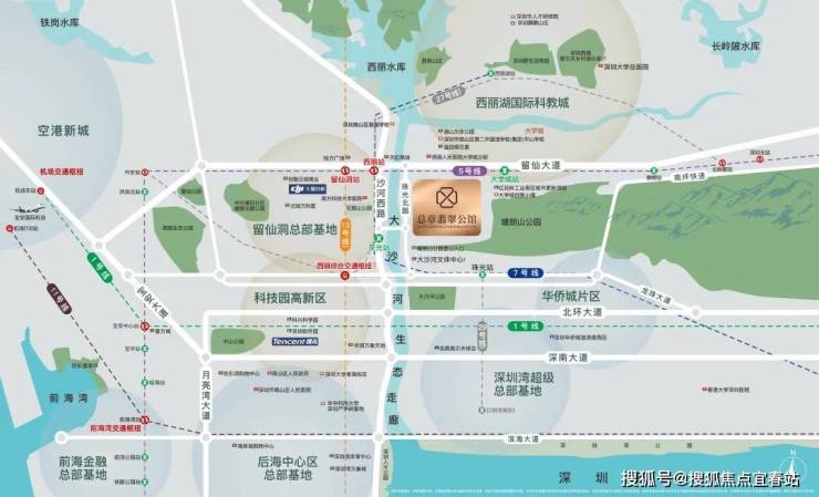 西丽雄踞大沙河创新走廊上游,以 “三轴、三心、多组团” 规划,向南山北部核心生产生活服务中心迈进。本项目择址西丽核心腹地,汇聚四大发展动力源,引领品质生活范式: