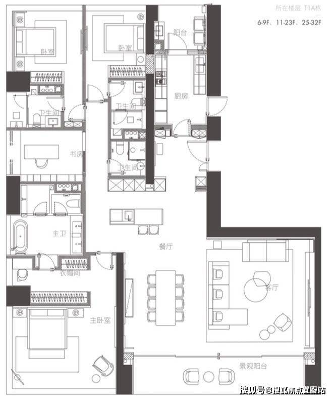 01户型 西端户 约350㎡ 四房两厅四卫