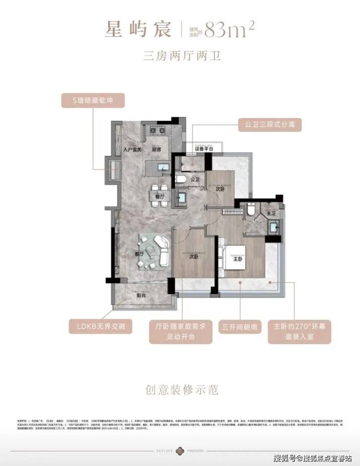 建面约83-133㎡3-4房宸式美学新著,LDKB巨幕方厅,跑道式景观阳台,小家化星级酒店主卧套房,270°环幕全景舱,客厅次卧无剪力墙灵动设计,实现超高实用率,每一户皆是颐安“超新一代作品”的匠心宣言。