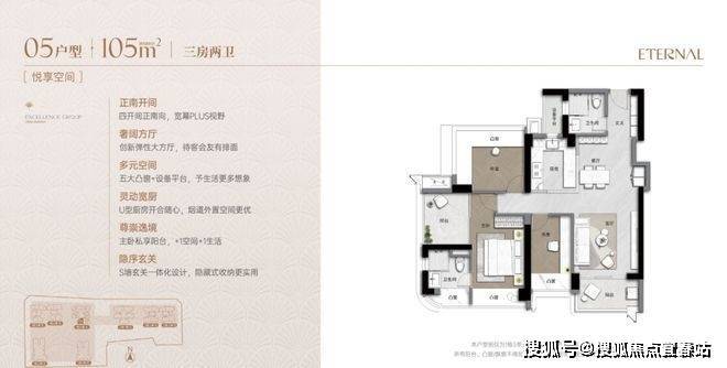 超高使用率90%+:通过“弹性方厅”(可变空间)、设备平台外拓、多飘窗实现。