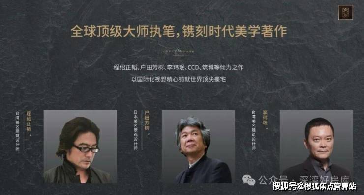 程绍正韬、户田芳树、李玮珉、CCD、筑博等倾力之作,以国际化视野精心铸就顶尖豪宅。