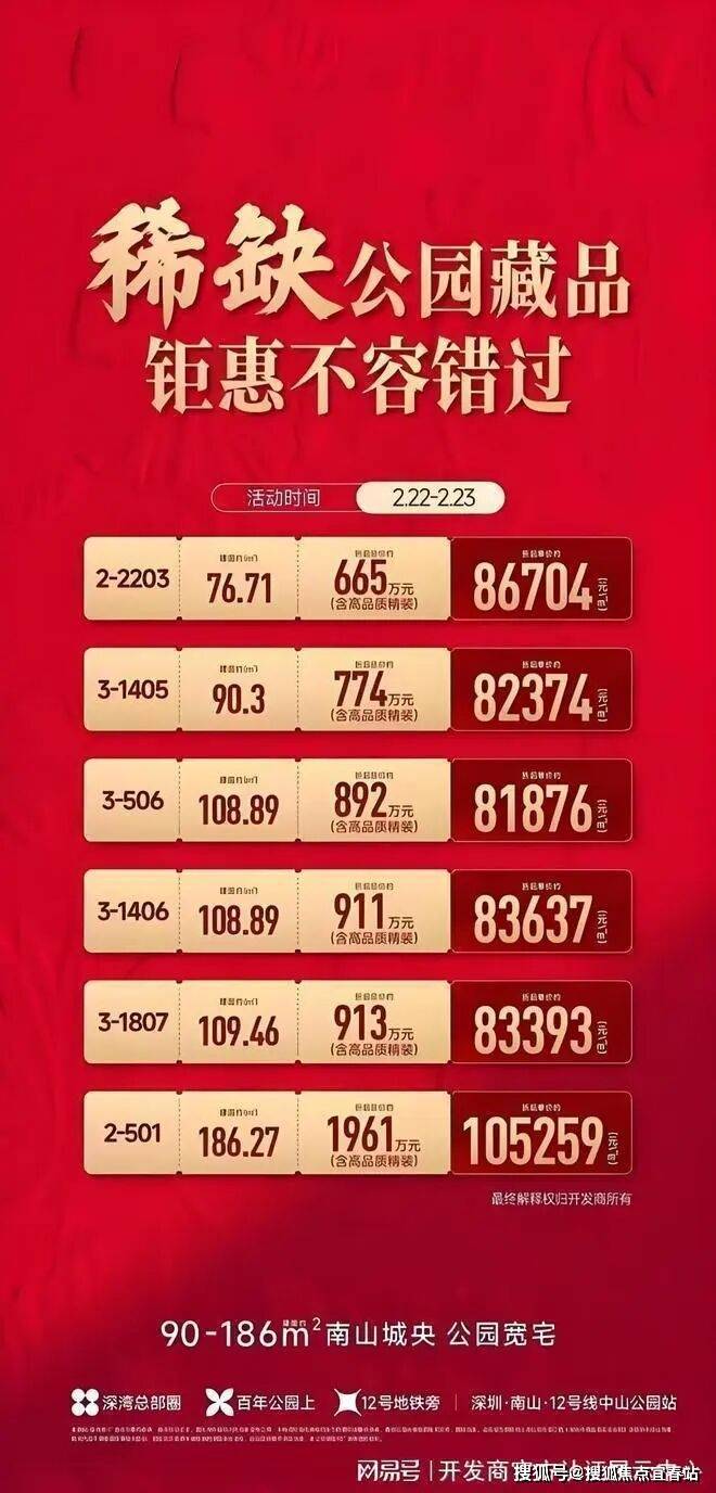 2. 单价低:对比南山核心区,性价比凸显(折后 7.7 万 /㎡起)