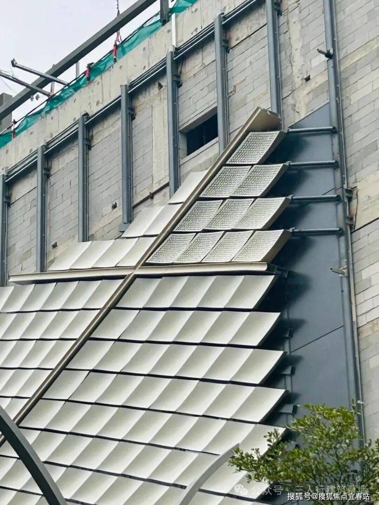 前面说过建筑要比拟为灯塔,那肯定是跟航海有关,自然建筑的立面也是如此,立面设计参考了风帆和船肋,用参数化算法驱动风帆几何形态,还用了亮银色氟碳喷涂铝型材制做的金属船肋线条,强化了建筑形体的转折。