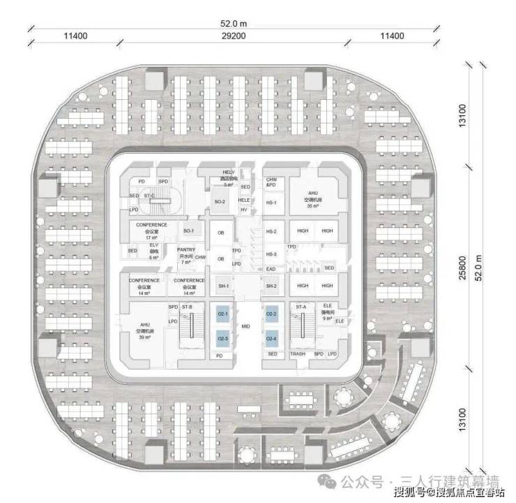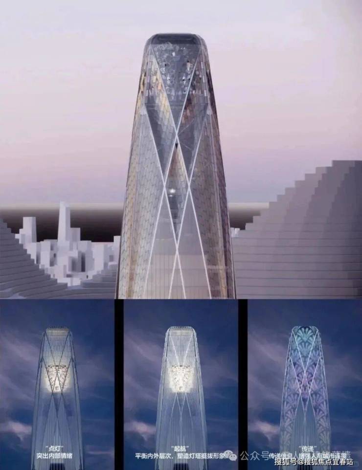 这种越往上越收细的造型让建筑能够适应各种功能,底部方形平面适合办公空间,中部收进区域便于酒店客房布局,顶部进一步收细的区域就非常适合做灯塔,夜间如果开灯的话,就好像一个灯塔,让城市的天际线更不一样
