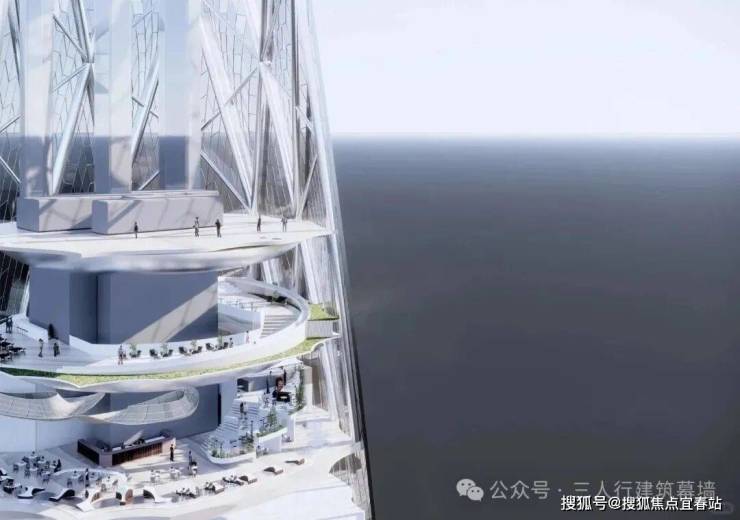 建筑设计方案以风帆与船肋元素作为创作灵感,塔的顶部以几何形态收缩。塔楼的最高处是发光晶石装置,形成一个“灯塔”效应,指引方向。整个大楼就像一个巨大的灯塔,同时也是这个高楼的设计理念!因为招商局本身就有航海基因的历史,同样了,这个大楼也有指引城市方向的寓意,连接人、城市与自然。