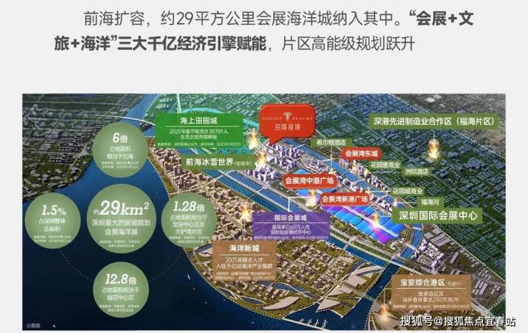 <商业>:距离约2公里的会展湾·公园里(建面约2万㎡)已开业,引入麦当劳、瑞幸、潮汕特色餐饮等品牌;约5公里处的万丰海岸城16万方商业综合体、鸿荣源湾区壹方及宝安首家山姆会员商店等成熟商业体。