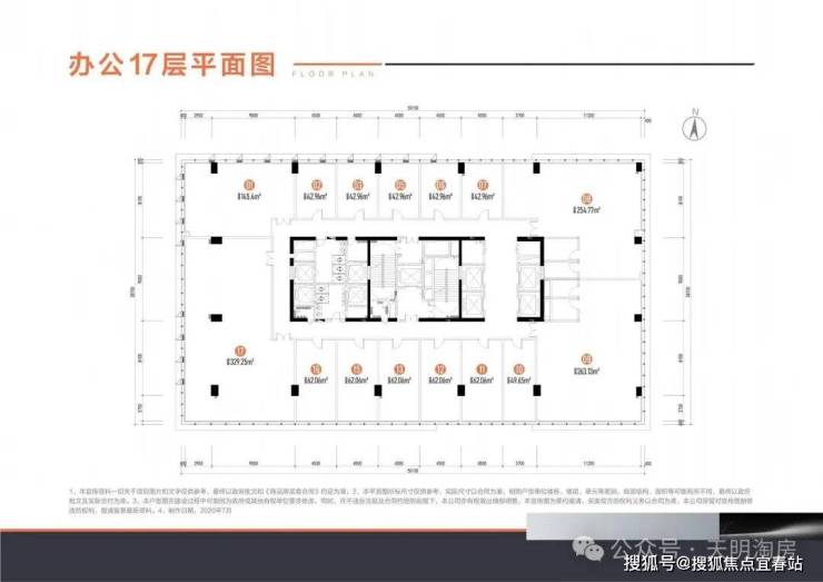 🏢建面约43-329㎡办公(4.5米高):3F-17F,5梯15户