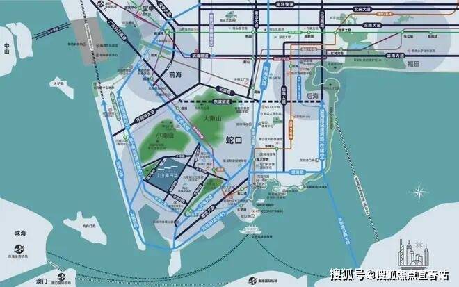兴海大道、南海大道、望海路、妈湾跨海隧道(建设中)等;另外还有深圳宝安国际机场,多条航线直飞全球120个城市,紧邻太子湾邮轮母港,连通香港