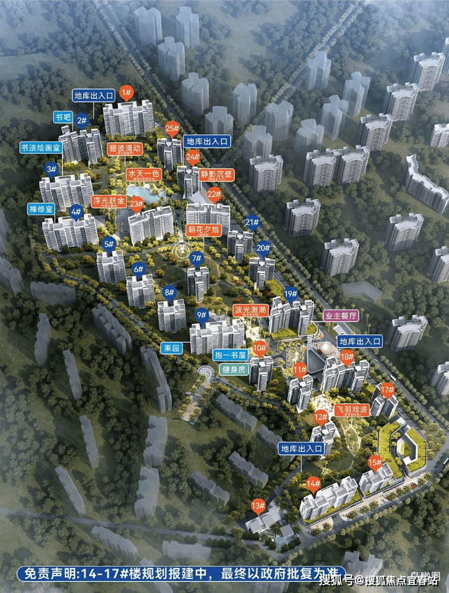 新增设了约 1600㎡抱一书屋、约 1300㎡度假式泳池、超2500㎡社区幼儿园、业主会所、业主餐厅、健身房等。