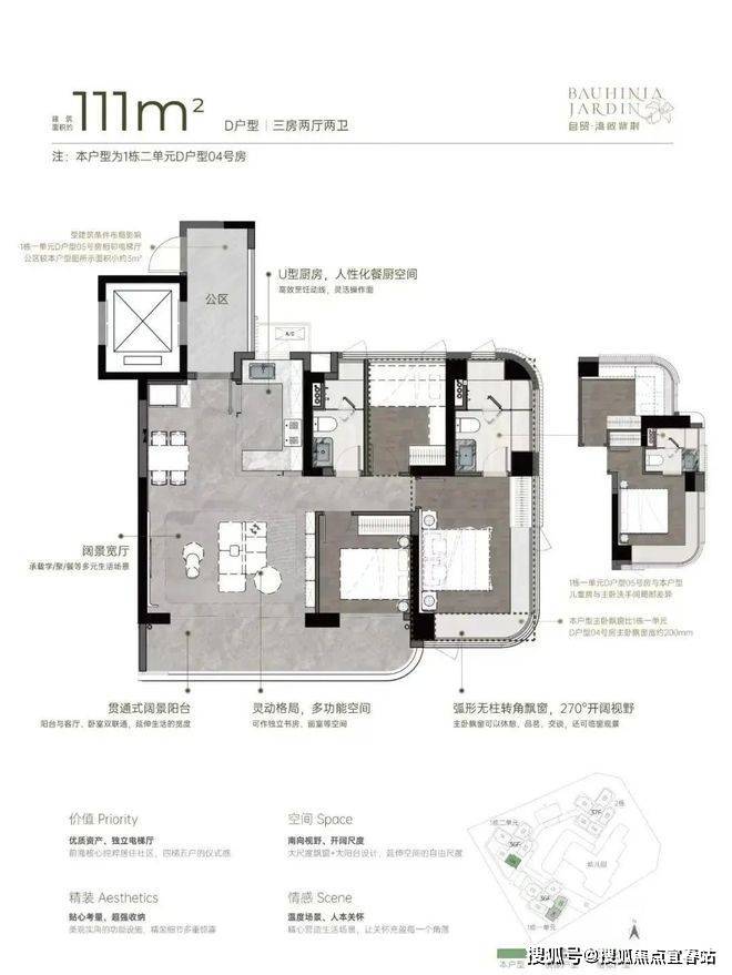 建面约111㎡宽厅阔景 灵动三房;