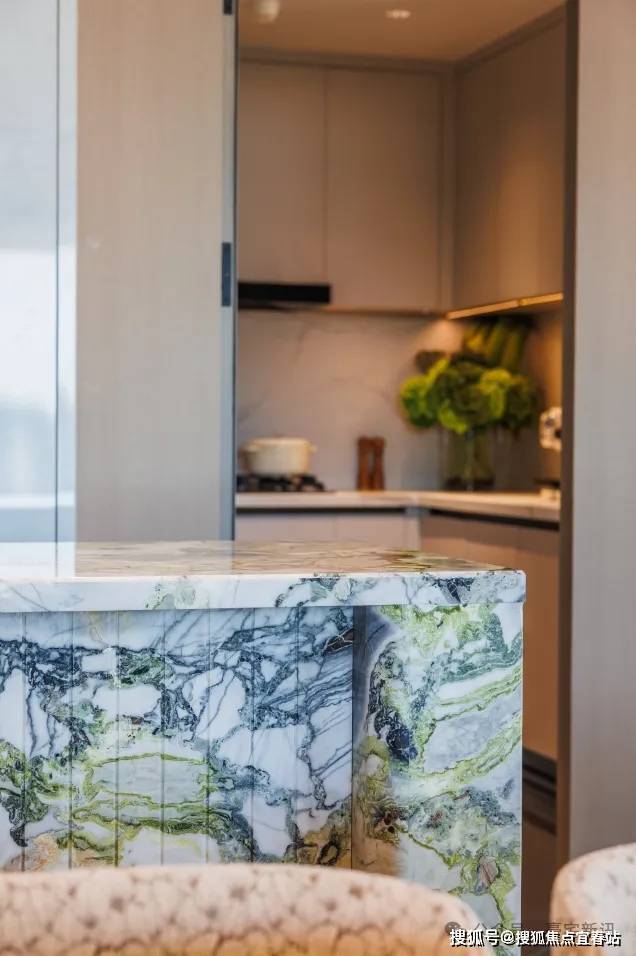 岛台采用的是冷翡翠大理石,清灵如诗,莹洁似玉,每一块都是独一无二的艺术品。
