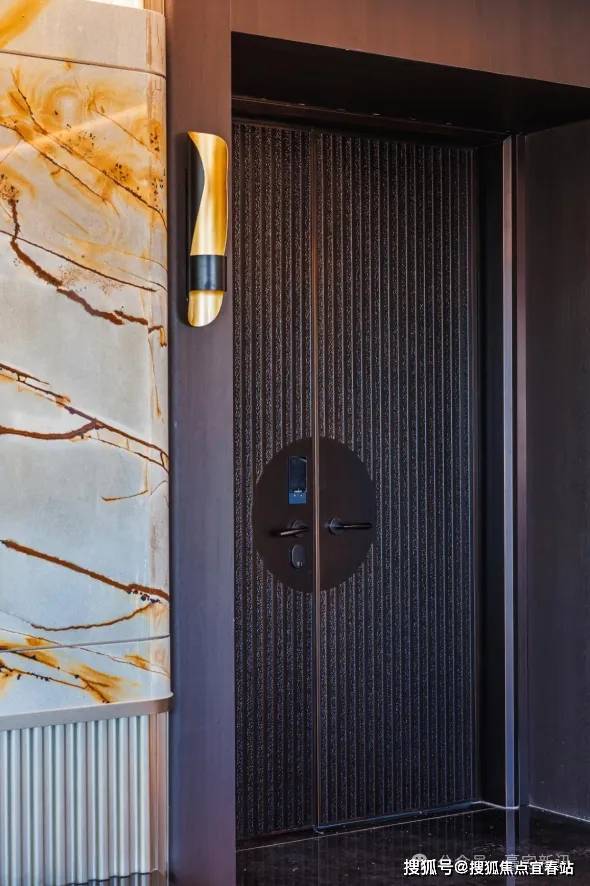从踏入楼栋开始,户型的仪式感与私密性便已拉满。以顶配户型285㎡户型为例,入户门选用“门老爷”定制款,透着扎实的安全感。