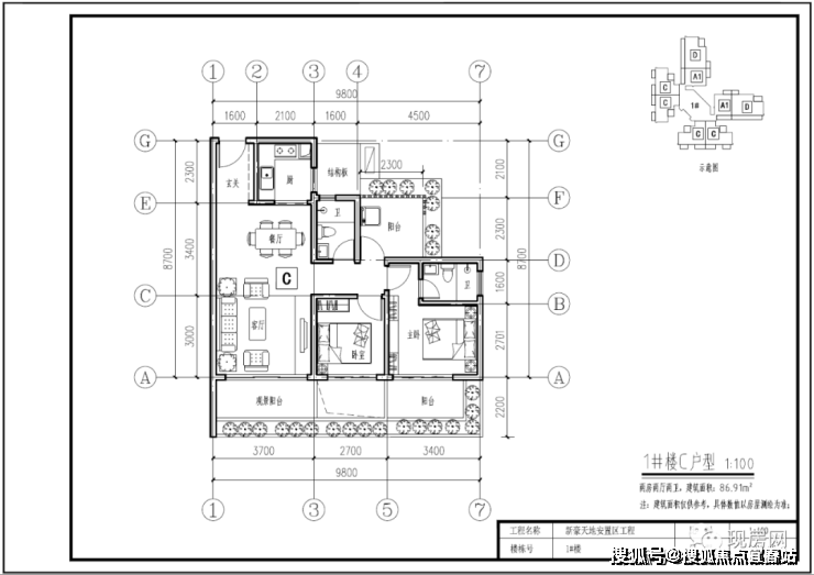 1#号楼C户型86.91㎡(两房两厅两卫)
