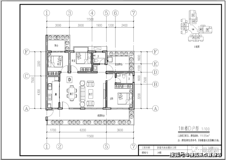 1#号楼D户型111.55㎡(三房两厅两卫)