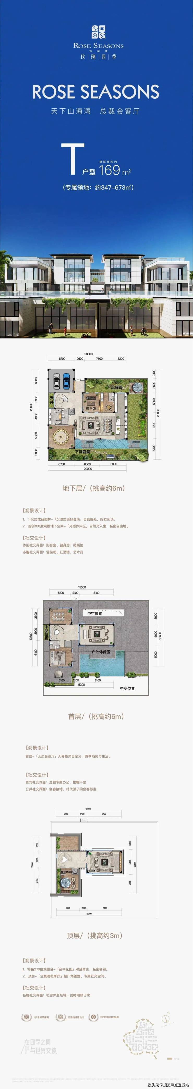 「户型鉴赏」🔥【T户型】建筑面积约169㎡三层空间五个界面(顶层挑高约3m+首层挑高约6m+地下层挑高约6m)