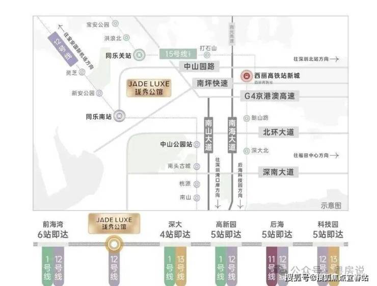 地处南山与宝安交界处,紧邻地铁12号线(在建)同乐南站,步行距离约500米,项目坐拥南山核心区位,毗邻科技园、前海自贸区及留仙洞总部基地,5站可达高新园,辐射粤港澳大湾区核心产业带,具备承接高端人才居住需求的潜力。