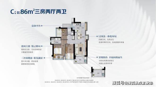 空间尺度:主卧2.95米开间,次卧2.3米,最小卧室2.15米,满足儿童房+书房双重功能,阳台可选东北、东南或西南朝向。