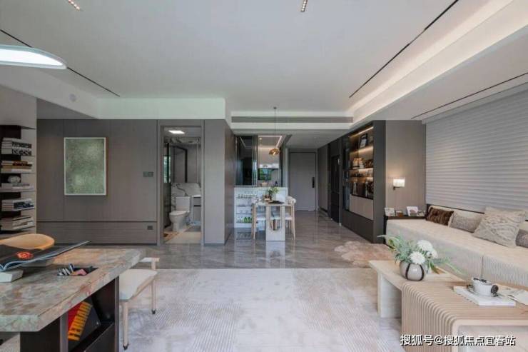竖厅格局实现LDKB一体化,放下一张6人长桌丝毫不显逼仄,空间尺度感拉满。