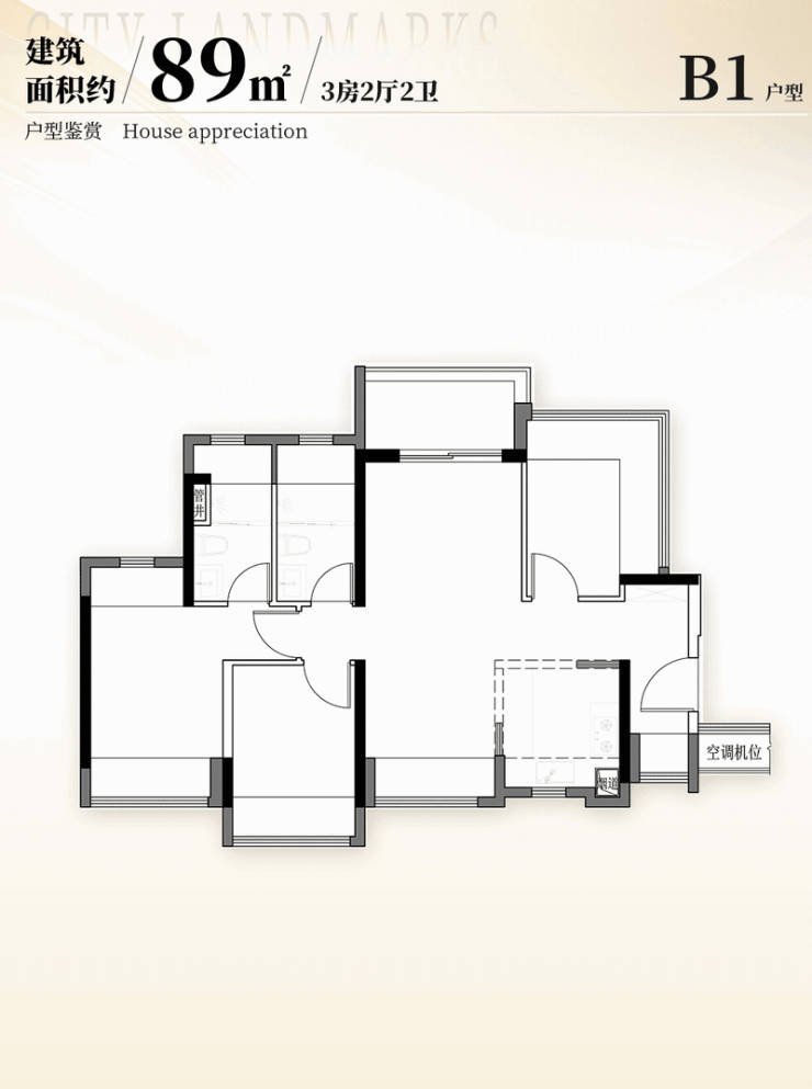 具体户型上,建面约89㎡三房两卫有三个户型,A1为竖厅户型,B1/B2是镜像的南北通户型,不管是哪个户型,每个空间都很好用。
