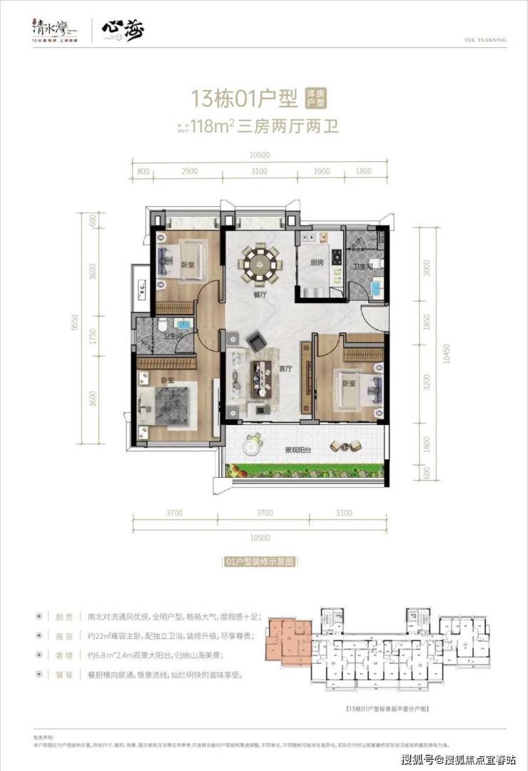 12#06号位、13#01号位118㎡户型,通透三房两卫