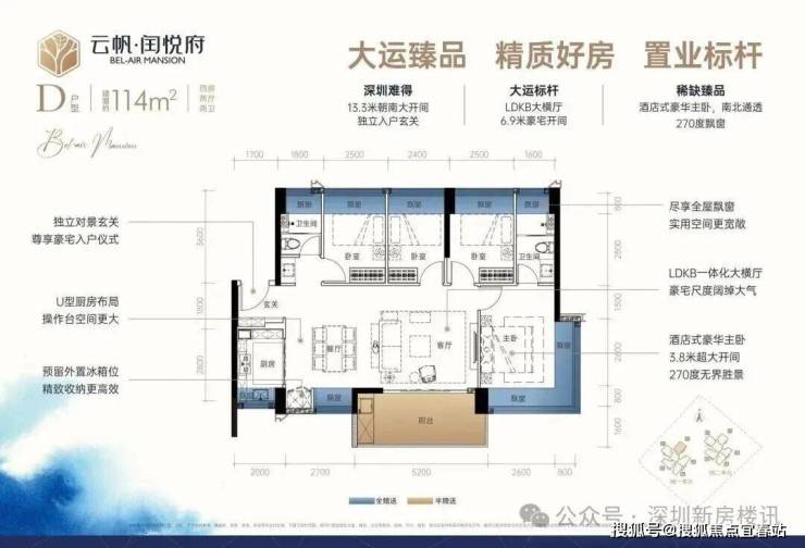 云帆·闰悦府,位于龙岗区龙城街道龙翔大道与如意路交汇处东南侧约140米,地处龙岗中心城爱联板块核心位置,周边配套成熟且发展潜力巨大。项目紧邻龙城公园、大运中心等城市地标,步行可达星河COCO Park、山姆会员店等商业配套,交通上距离3号线"爱联站"约600米,1站到大运站可换乘14/16号线及即将开通的深大城际/深惠城际,通勤便利性高。 龙岗区作为深圳产业强区,连续6年位居全国工业百强区榜首,2025年经济总量目标6800亿元,产业能级不断提升。润悦蓝湾公馆周边3公里内聚集了多个高新技术产业园区,如大运AI小镇(位于横岗街道,规划60.8万平方米,总投资6.91亿元)、嶂背工业区(规划面积45.9公顷,正在转型升级为AIoT研发基地)等。