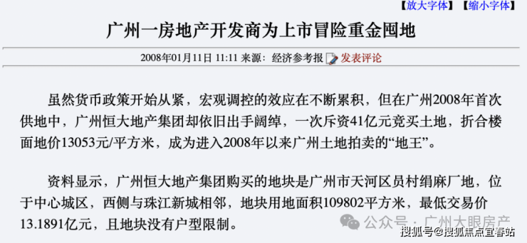其实,这不是绢麻厂地块首次拥有地王头衔,早在2008年1月,恒大以41亿天价竞得员村绢麻厂地块时,它就已经是天河地王。